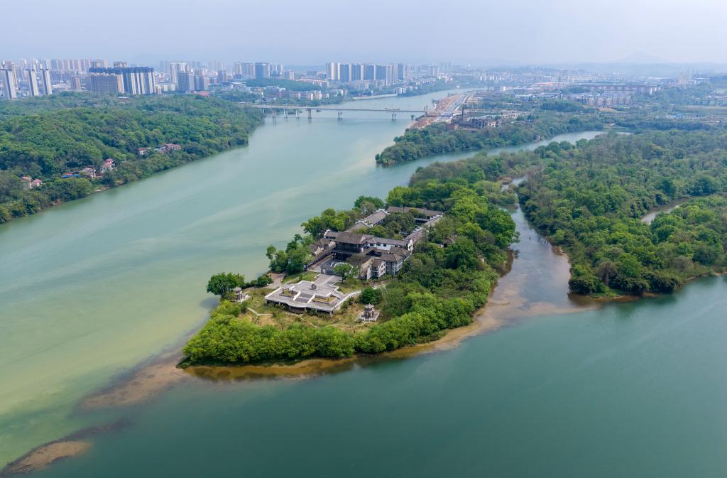 永州市零陵区潇湘二水汇合之处的萍岛(无人机照片)。新华社发(陈斌 摄)