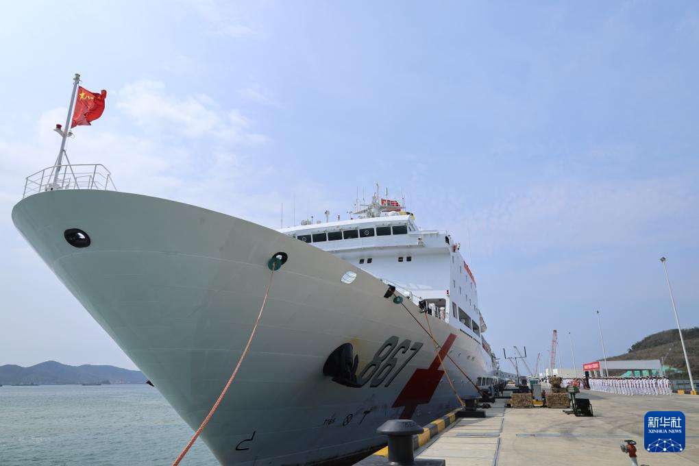4月26日,中国海军“丝路方舟”号医院船圆满完成“和谐使命-2025”任务,靠泊海南三亚某军港。新华社发(崔晓洋 摄)