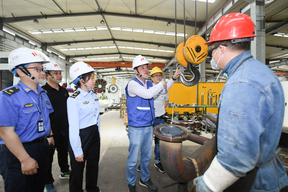 在浙江省湖州市吴兴区埭溪镇,由区、镇两级行政执法人员组成的综合行政执法队在企业厂房进行“综合查一次”协同检查(2022年5月25日摄)。新华社记者 翁忻旸 摄