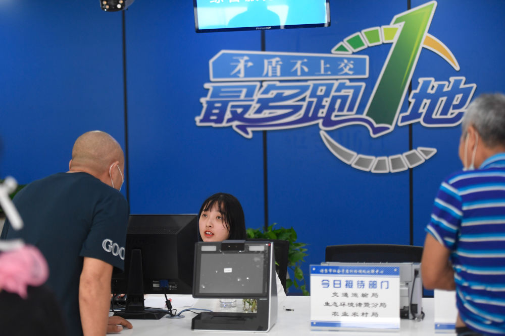 群众在浙江省诸暨市社会矛盾纠纷调处化解中心综合受理窗口咨询(2020年7月16日摄)。新华社记者 黄宗治 摄