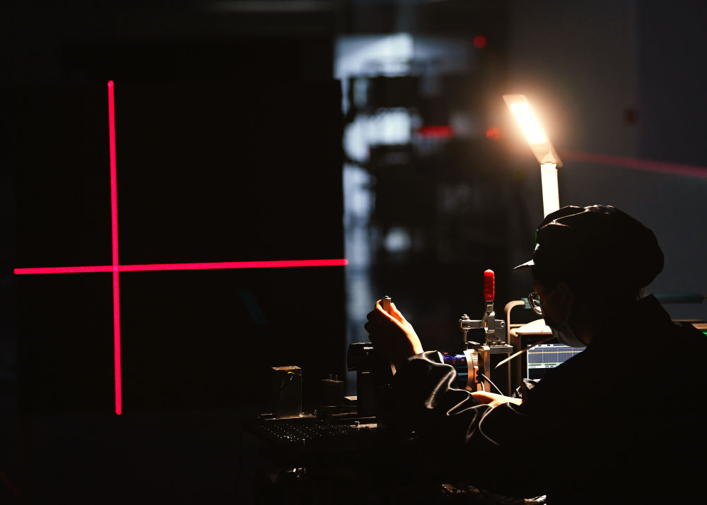 2023年3月1日,科研人员在位于中国光谷的武汉万集光电技术有限公司实验室测试激光雷达产品。