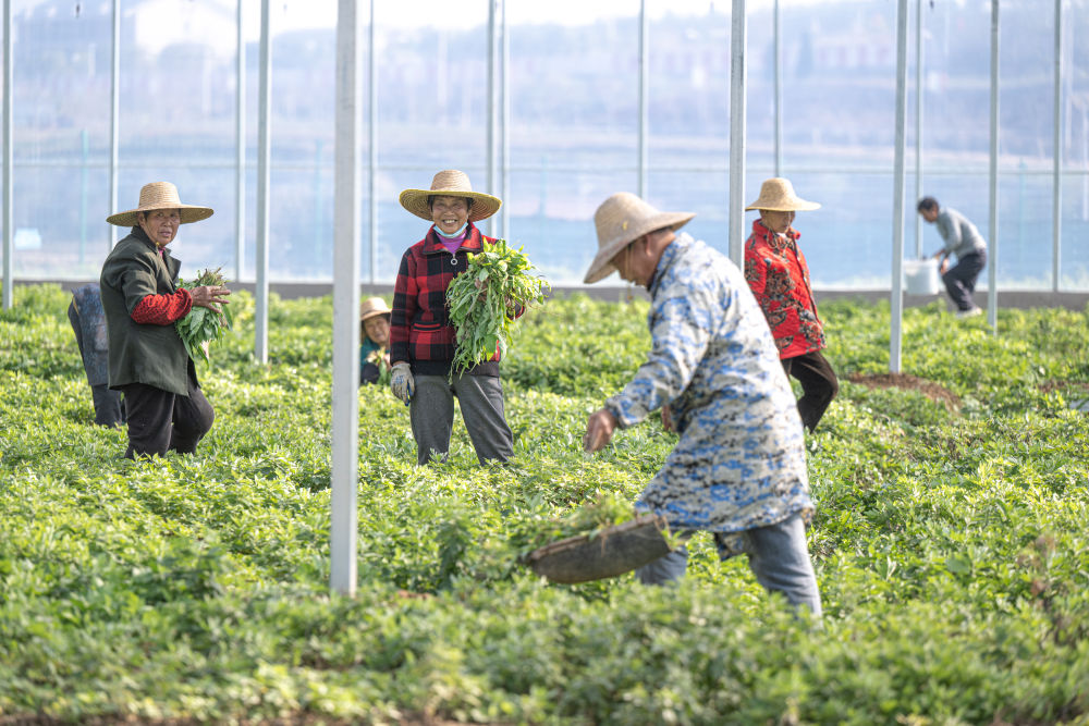湖北省蕲春县是李时珍的故乡,与艾草结缘的历史已逾千年。近年来,蕲春县抢抓“健康中国”战略机遇,专业选育蕲艾特色品种,提升相关产品附加值,产业化进程日益加速,“千年艾草”续写“产业富民”的新时代故事。这是2023年12月7日在蕲春县蕲艾种苗培育基地拍摄的作业场景。