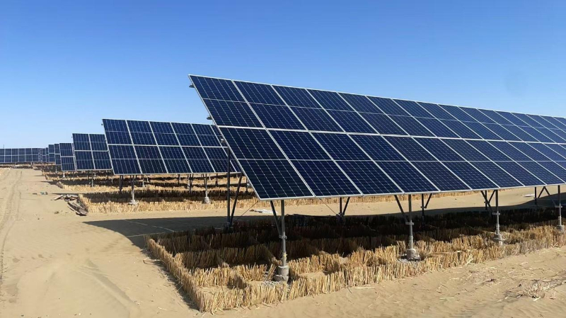 牢固树立绿水青山就是金山银山的理念,科技创新的触角正在向着生态治理领域延伸。2025年4月,中国华能牵头成立中国光伏行业协会光伏防沙治沙专业委员会,整合全产业链资源加速构建光伏防沙治沙技术体系。针对南疆流动沙漠、半固定沙丘、戈壁荒漠三类典型地貌,中国华能立项“塔克拉玛干沙漠环境演变与极干旱环境下光伏治沙关键技术研究及示范”重大科技项目,纳入国家林业和草原局揭榜挂帅项目“‘三北’工程攻坚战关键技术研发”课题,通过研究荒漠植被恢复、农林牧物种种植等关键技术,创建“光伏+防沙治沙”融合发展模式。