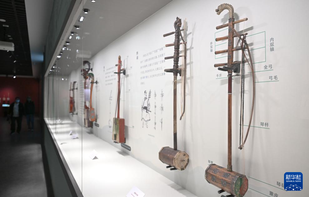 11月29日,参观者观看现场展出的乐器阿尔泰雅托噶。