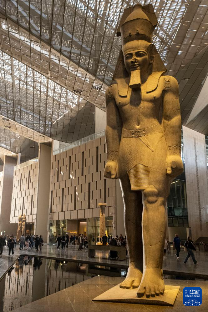 这是12月20日在埃及吉萨的大埃及博物馆拍摄的法老拉美西斯二世巨像。