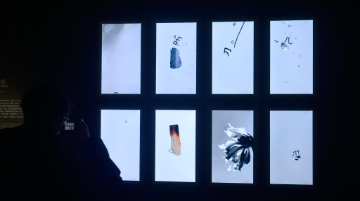 1月27日,在山东博物馆“对话蛋壳黑陶高柄杯”明星文物展上,一名参观者观看龙山文化蛋壳黑陶高柄杯。