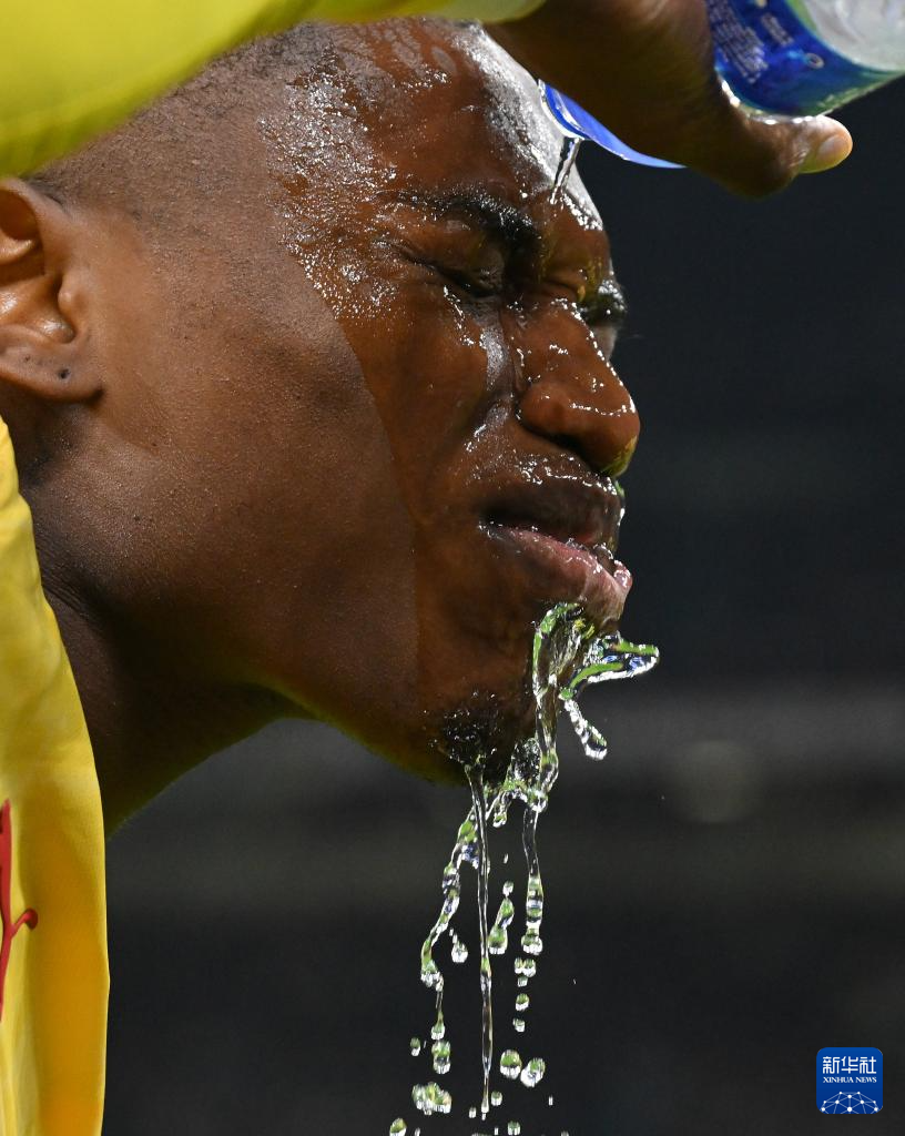 10月19日,AC米兰队球员莱奥在比赛前用水洗脸。