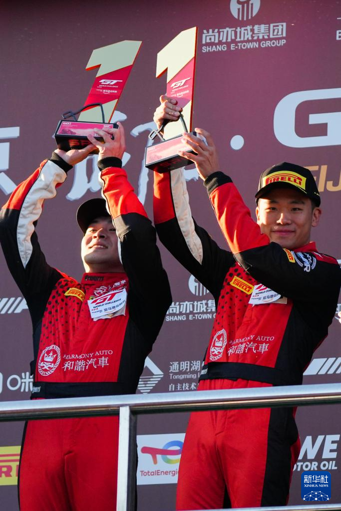 10月19日,本轮冠军胜地-和谐车队中国车手张亚琦(左)/叶一飞在赛后。