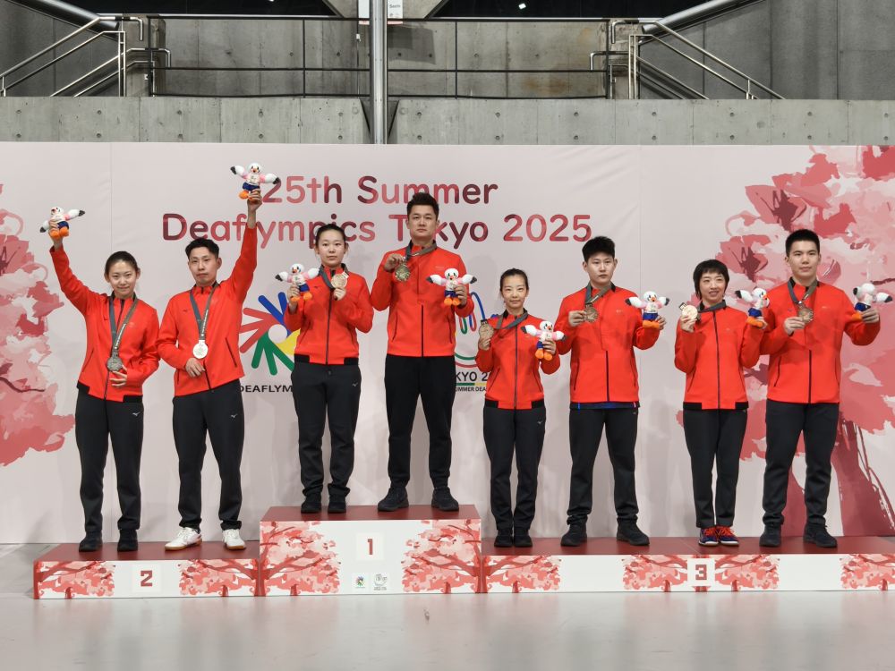 新华社东京11月18日电(记者岳晨星、贾浩成)第二十五届夏季听障奥运会18日继续进行。中国代表团当日收获两枚金牌:女子公路自行车20公里积分赛中,孟艳拿下中国代表团本届赛事首金;中国队包揽乒乓球混双项目前三名。