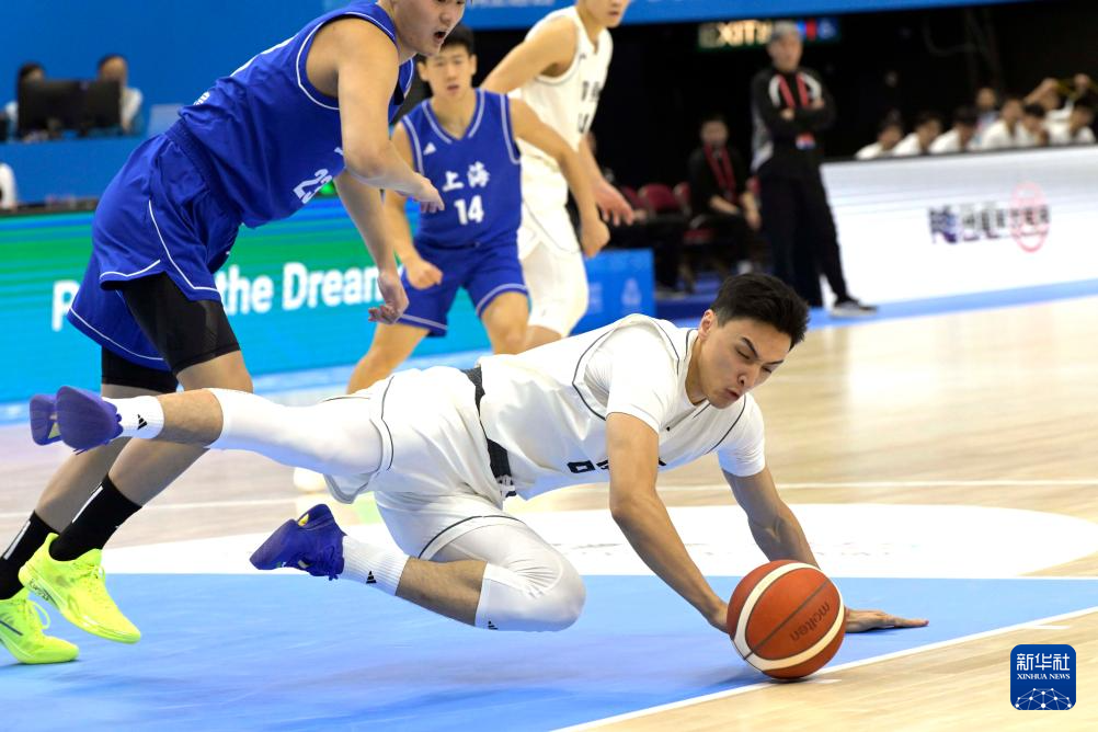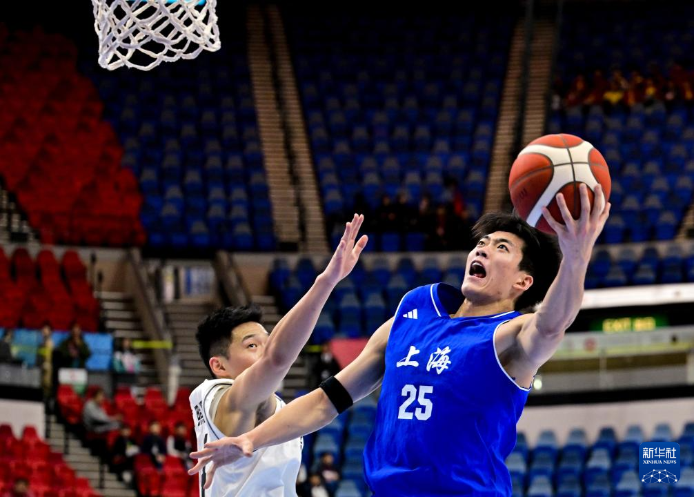11月19日,上海队球员郭丰玮(前)在比赛中。