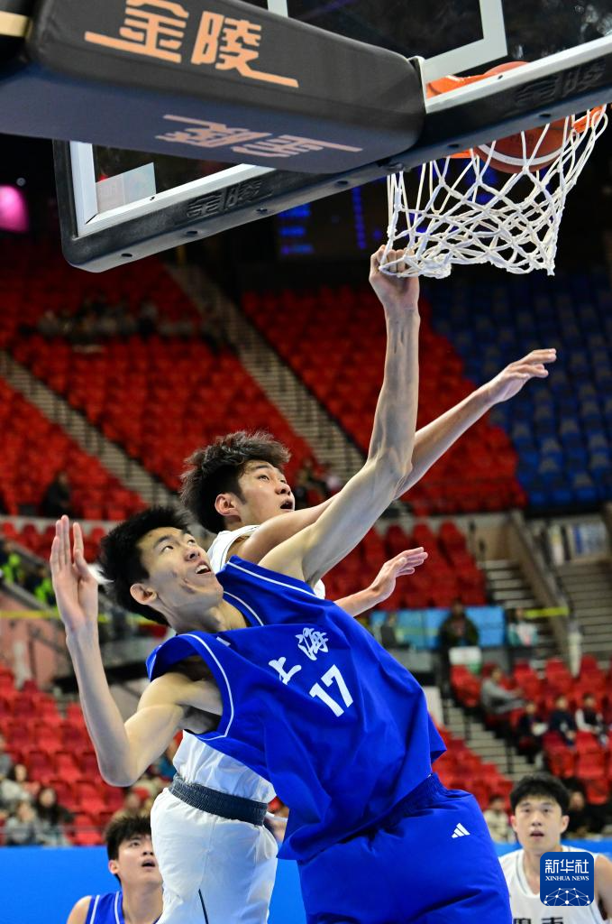 11月19日,上海队球员万孟霖(右)在比赛中进攻。