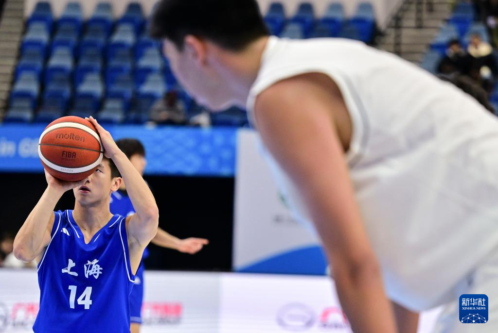 11月19日,上海队球员陈天灿(前左)在比赛中罚球。