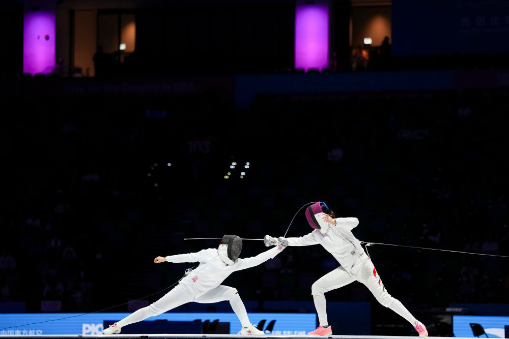 在女子重剑团体季军争夺战中,北京队以43:32击败香港队,摘得铜牌。