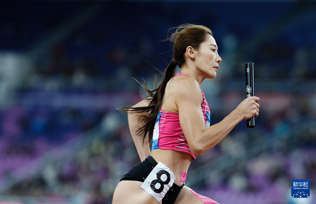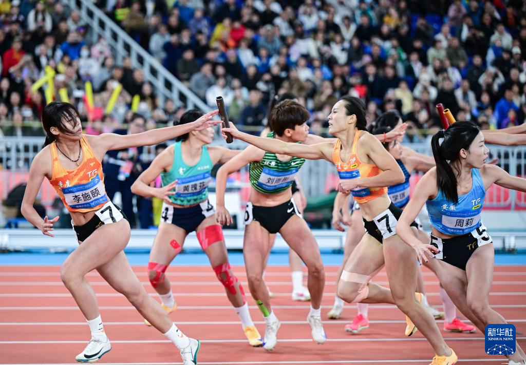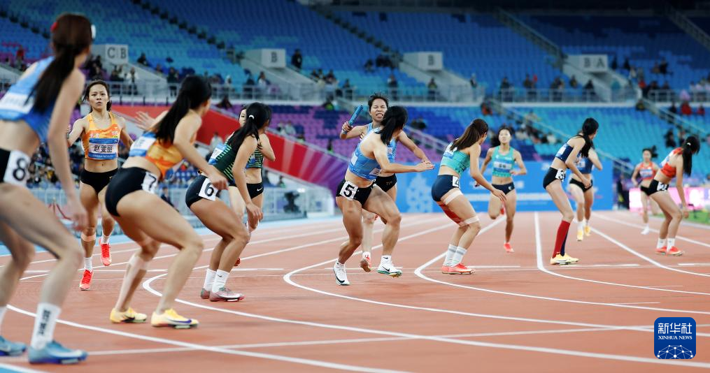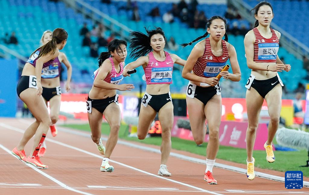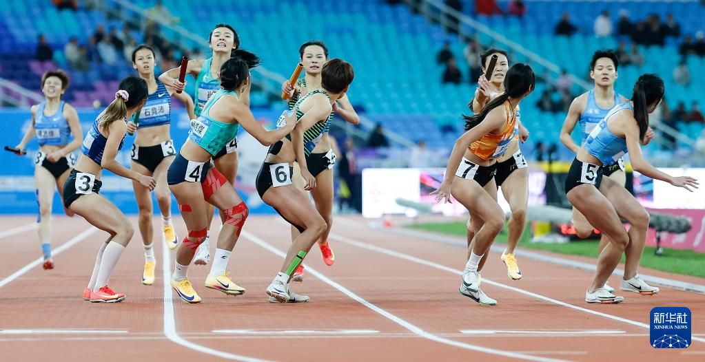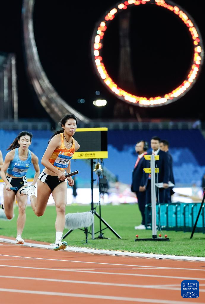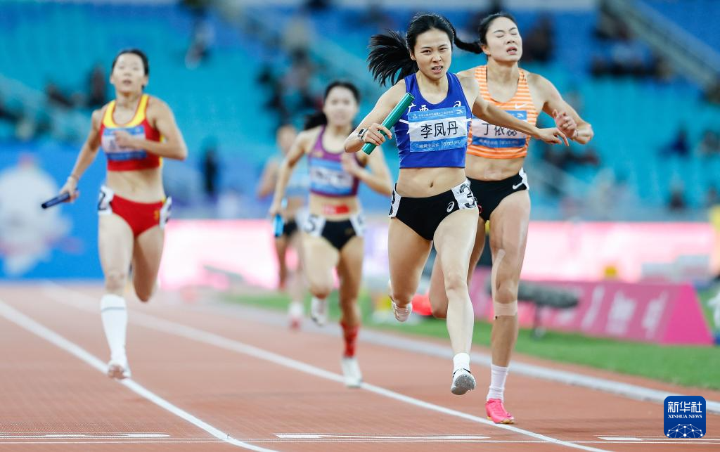 当日,第十五届全国运动会田径项目女子4X400米接力预赛在广州举行。