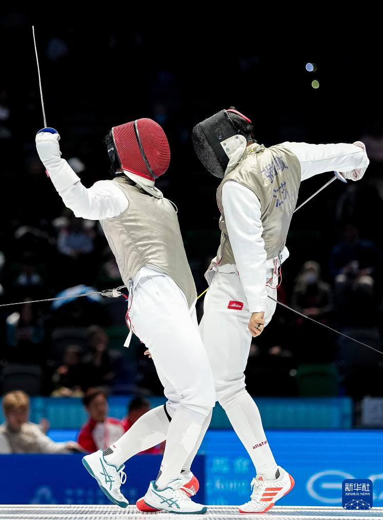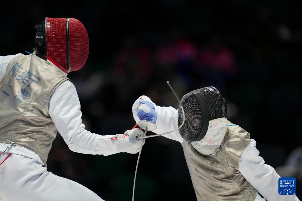11月19日,上海队选手蔡金珲(左)和江苏队选手强璐敏在比赛中。