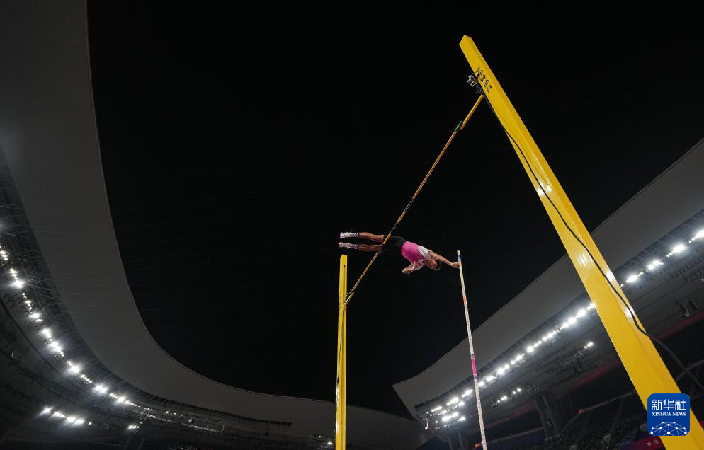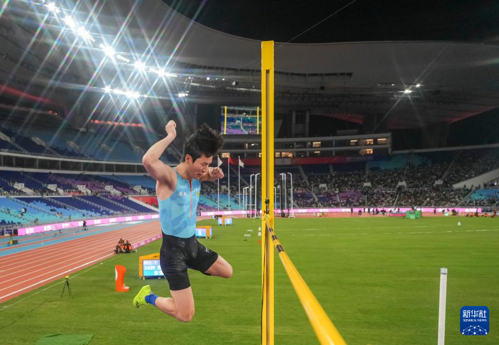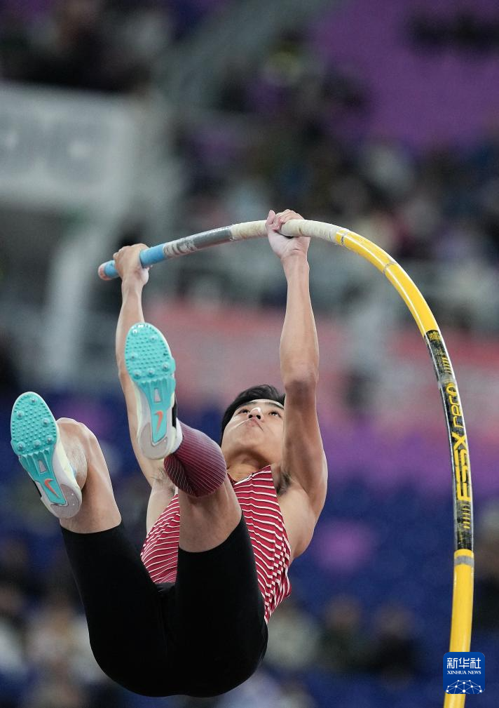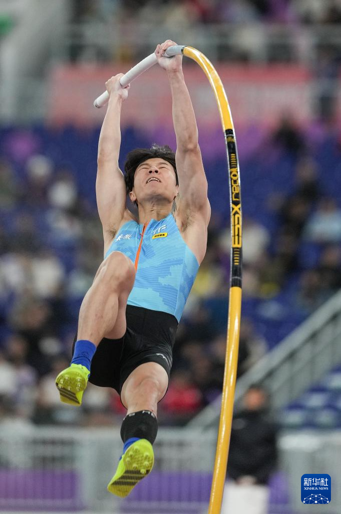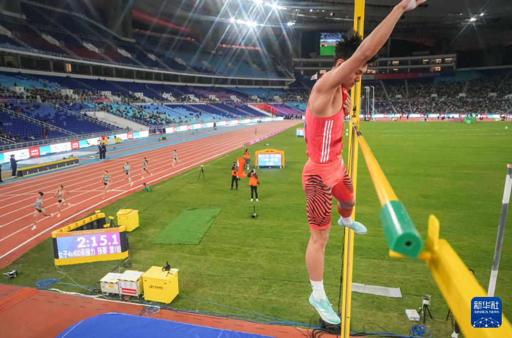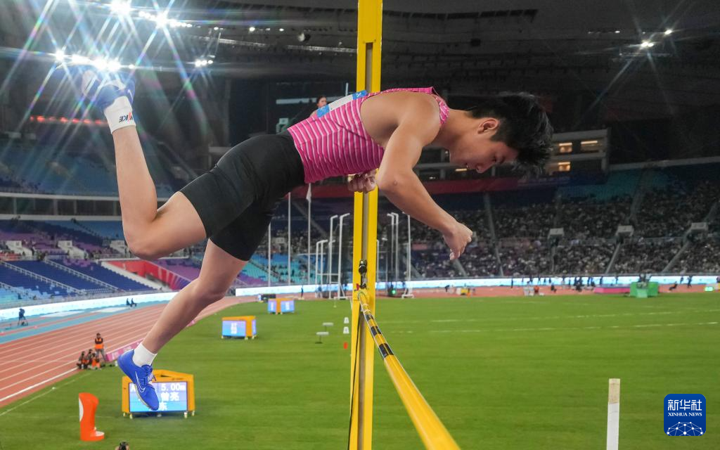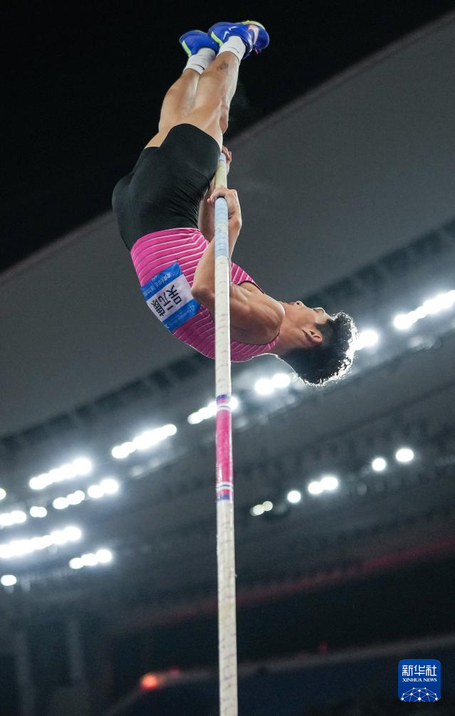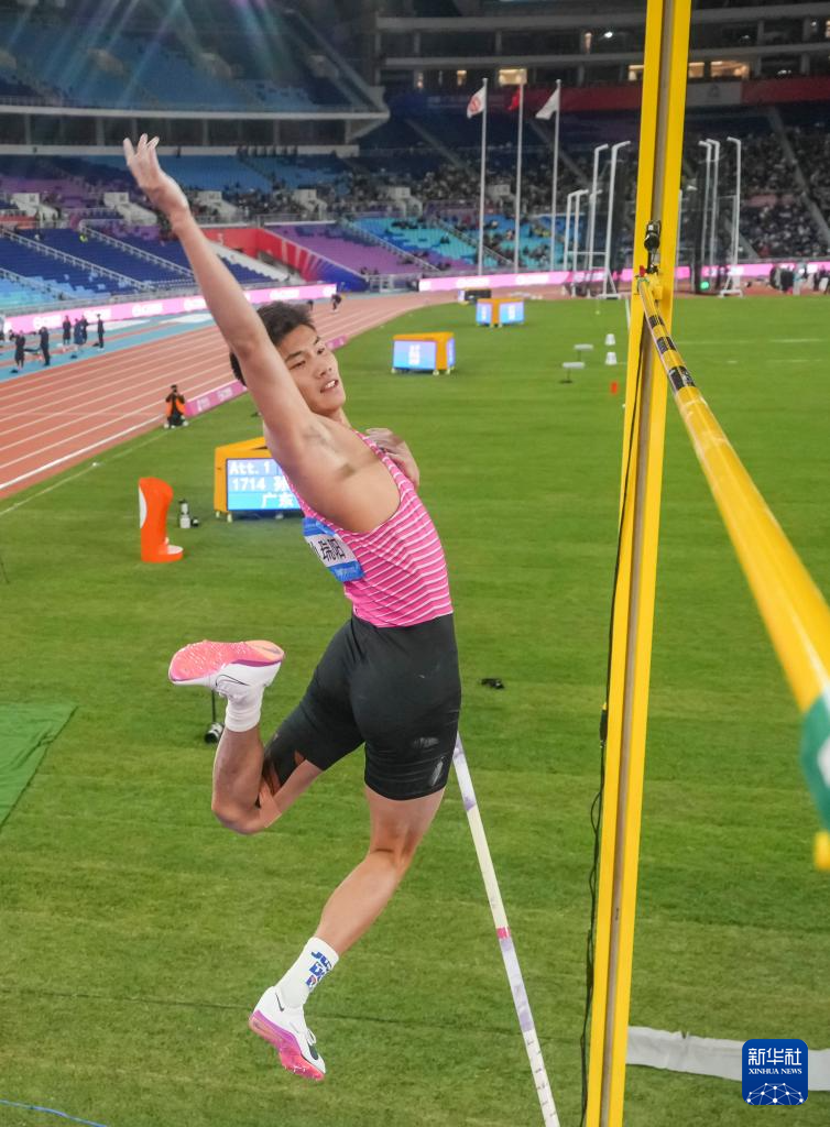 当日,第十五届全国运动会田径项目男子撑杆跳高决赛在广州举行。