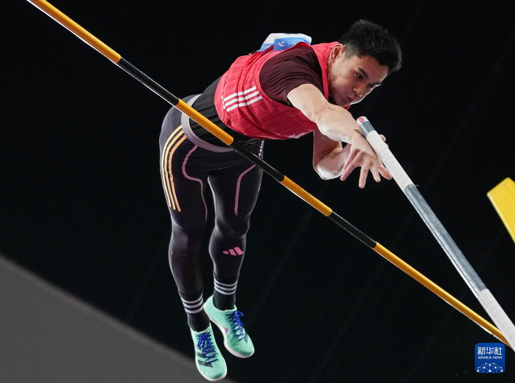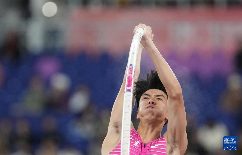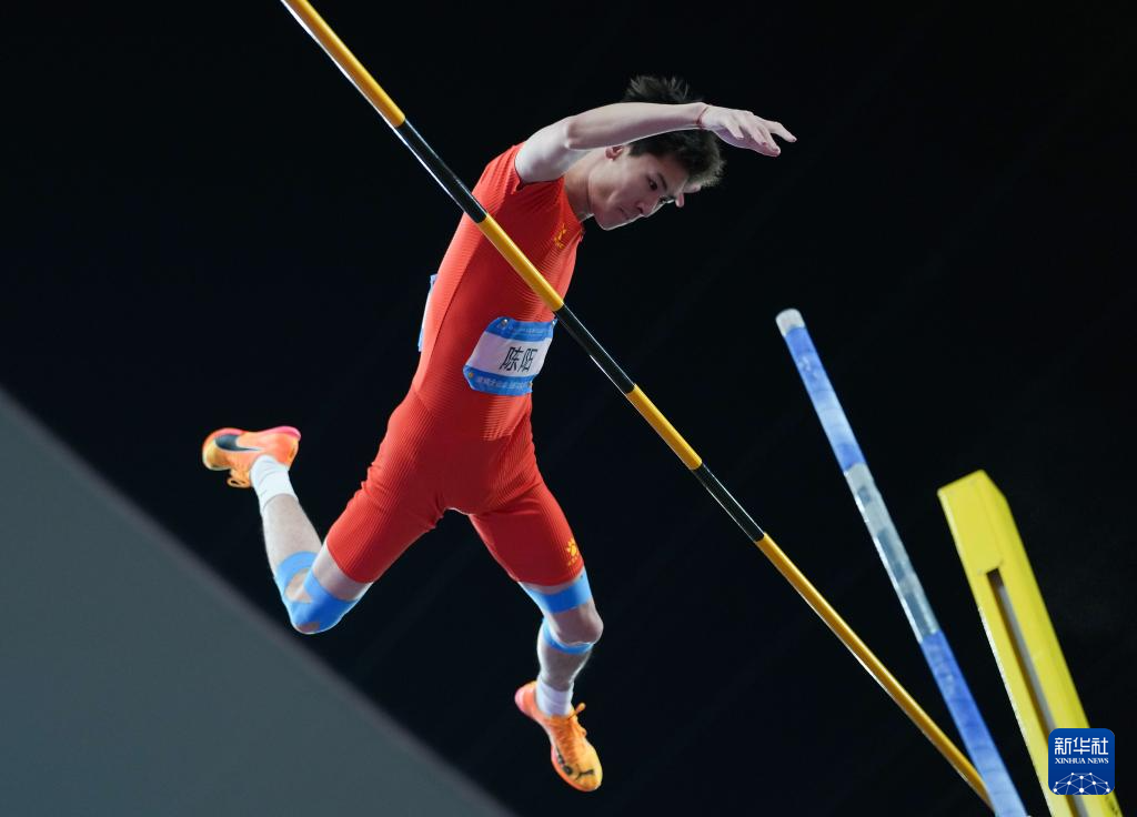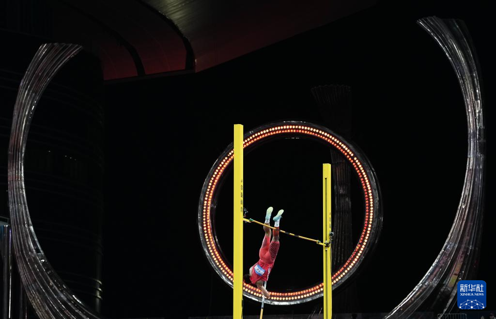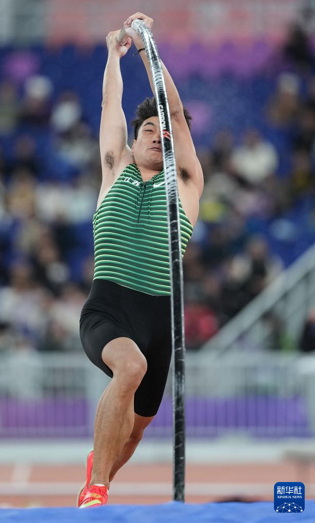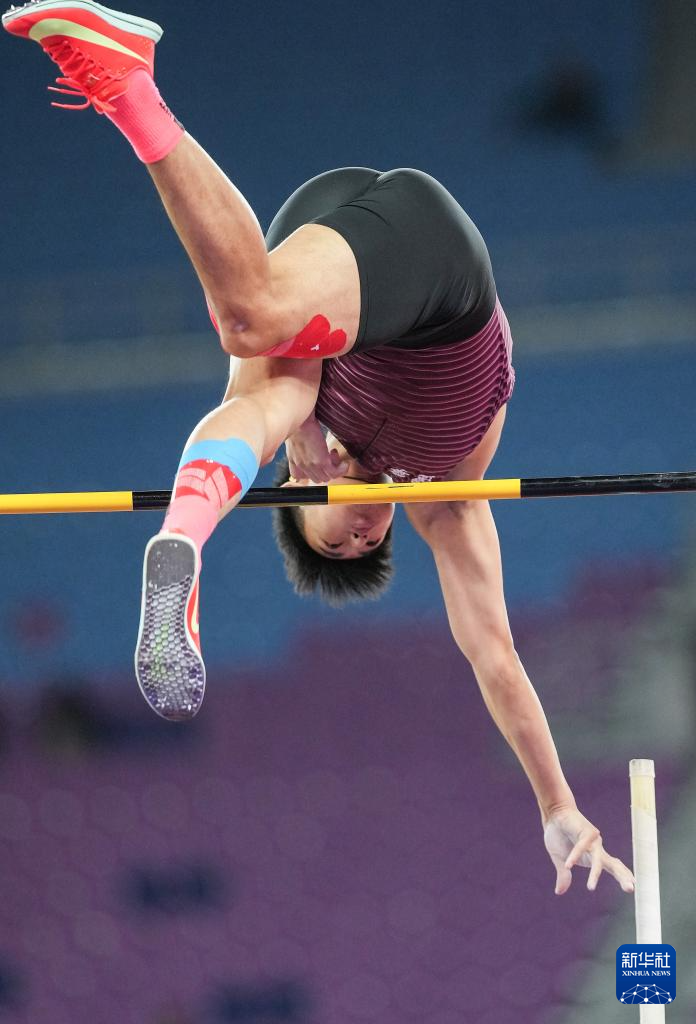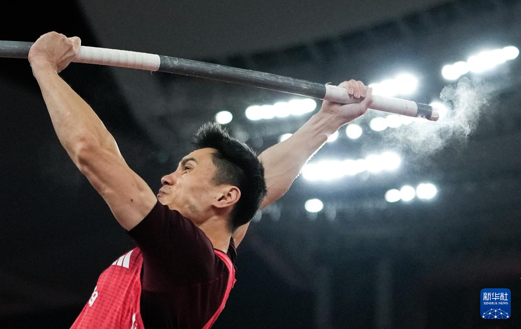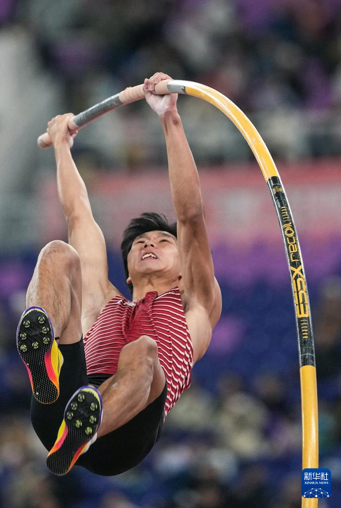 当日,第十五届全国运动会田径项目男子撑杆跳高决赛在广州举行。