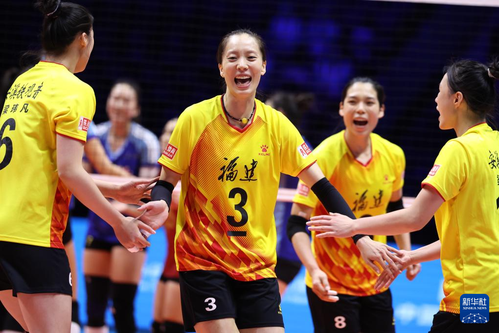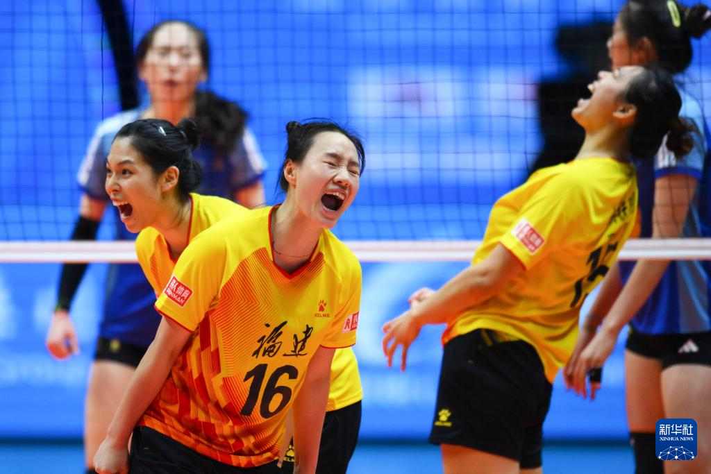 11月19日,福建队球员梁桂倩(中)在比赛中庆祝。