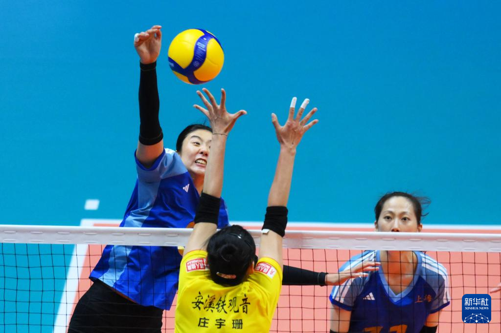 11月19日,上海队球员仲慧(上)在比赛中进攻。