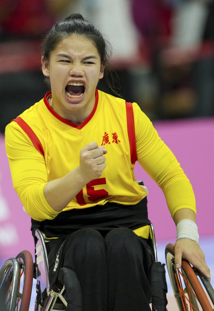 当天下午,广东一团和北京队的女子组决赛率先进行。双方攻防转换紧凑迅速,广东一团凭借稳健的防守,将领先优势始终保持在3分左右,最终11:7击败北京队,拿下了三人制轮椅篮球的首金。
