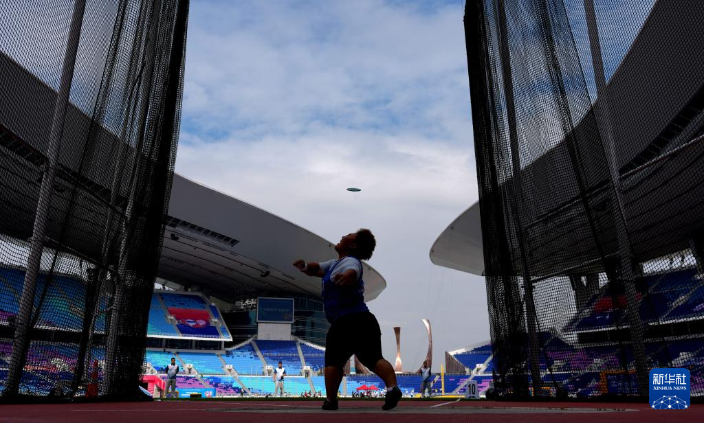 12月10日,内蒙古队选手孟根吉米素在女子铁饼F41级决赛中试投。最终,她获得冠军。