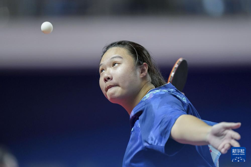 12月10日,湖北队选手柳萌在乒乓球TT9女子单打小组赛中。最终,她3比0战胜安徽队选手刘美丽。