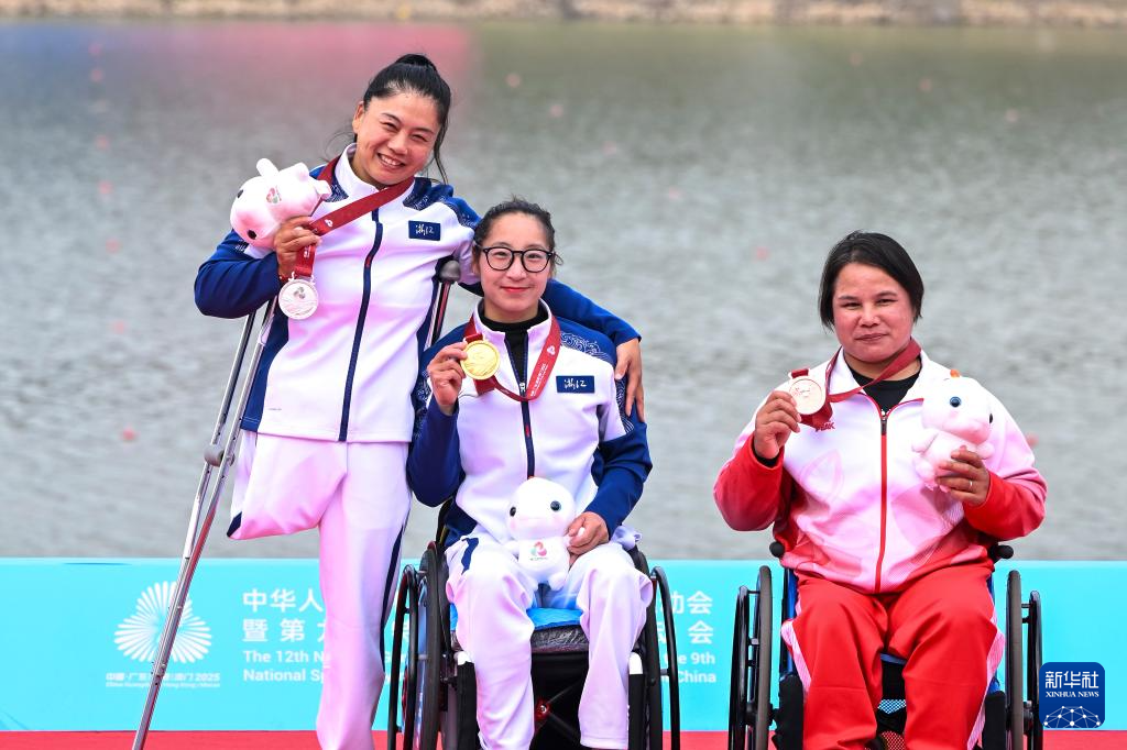 当日,全国第十二届残疾人运动会暨第九届特殊奥林匹克运动会皮划艇项目女子200米KL2级决赛在广州举行。