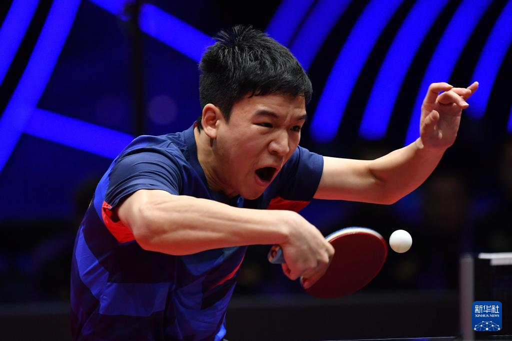 12月28日,山东魏桥·向尚运动队选手王楚钦在单打比赛中回球。他3比1战胜黄石华新队选手向鹏。