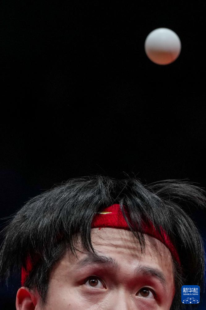12月28日,山东魏桥·向尚运动队选手王楚钦在单打比赛中。他3比1战胜黄石华新队选手向鹏。
