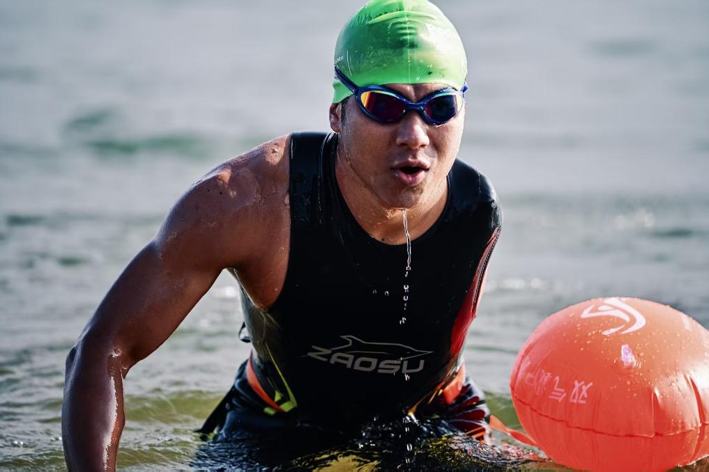 王家超在进行横渡挑战。童振胤 摄