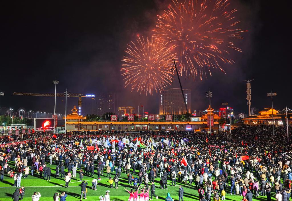 1月2日,人们在活动现场观看烟花表演(无人机照片)。新华社记者 杨文斌 摄