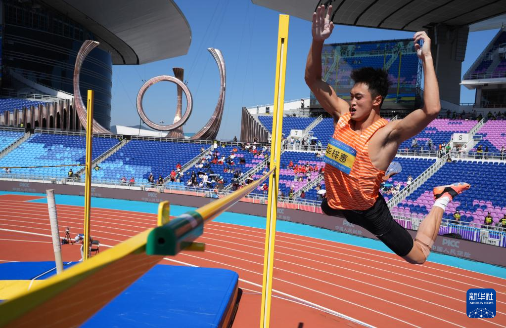 当日,第十五届全国运动会田径男子十项全能撑杆跳高比赛在广州举行。