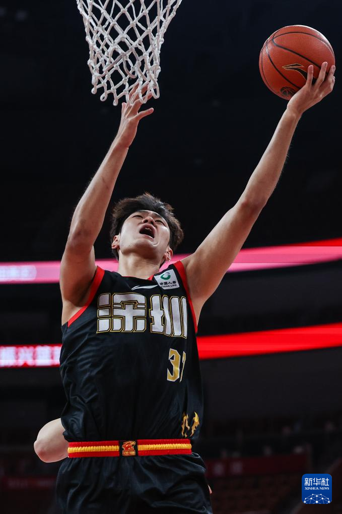 1月25日,深圳马可波罗队球员王浩然在比赛中上篮。