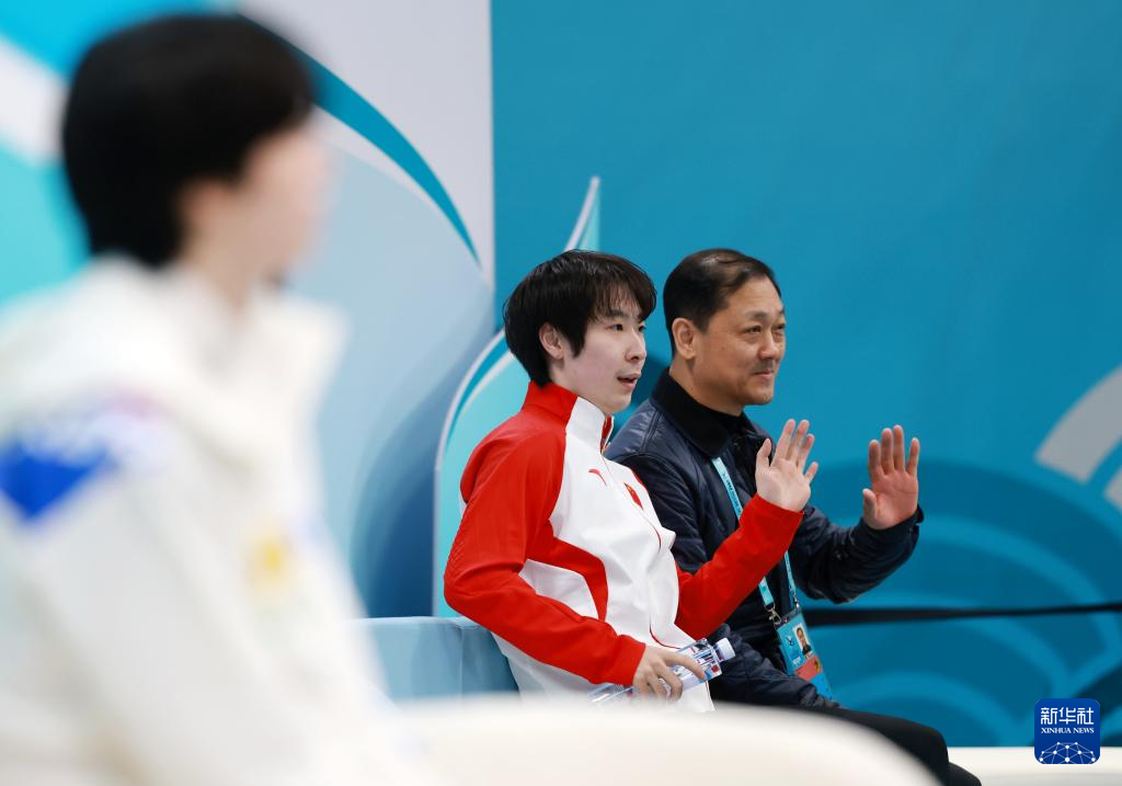 1月25日,中国选手金博洋(中)在等待成绩。