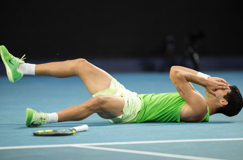 阿尔卡拉斯获胜后瘫倒在地。“这场比赛是我迄今为止最艰难的比赛之一,我们今天把彼此都逼到了极限。”赛后,阿尔卡拉斯说。当被问及是什么支撑着他最终赢下这场比赛时,他回答道:“是信念。我讨厌放弃,所以我会拼到最后一球,并且永远相信自己在任何情况下都能把比赛扳回来。”
