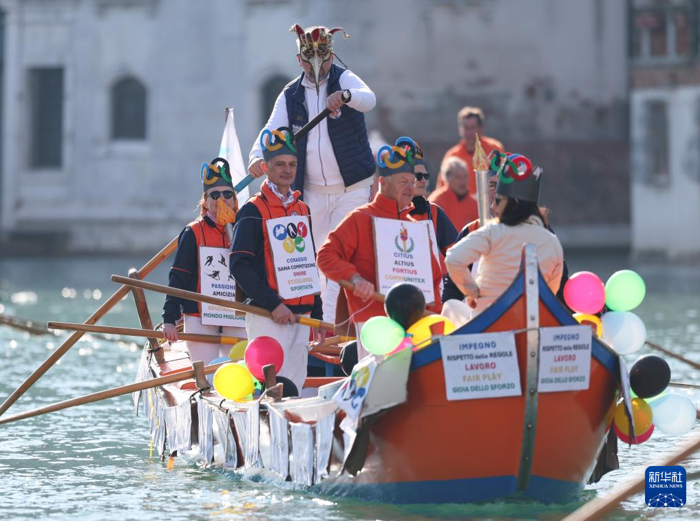 2026年米兰-科尔蒂纳冬奥会即将于2月6日开幕。在意大利威尼斯举办的狂欢节上,许多参与者在装扮中加入奥运元素,热情迎接体育盛会的到来。
