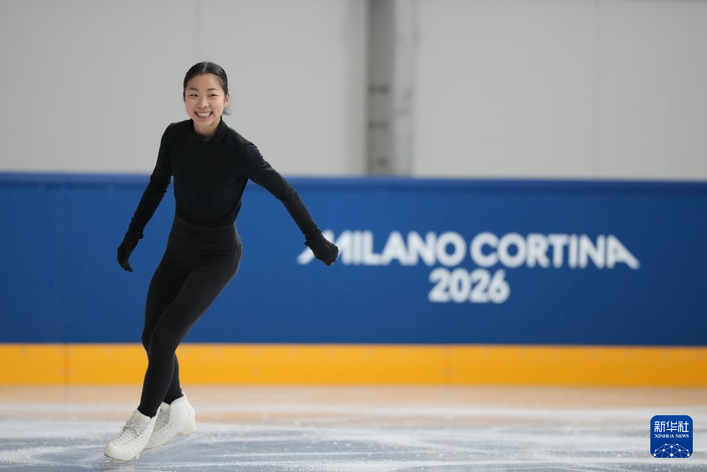 当地时间2月3日,中国花样滑冰运动员在米兰滑冰馆进行适应性训练,备战即将开幕的米兰冬奥会。