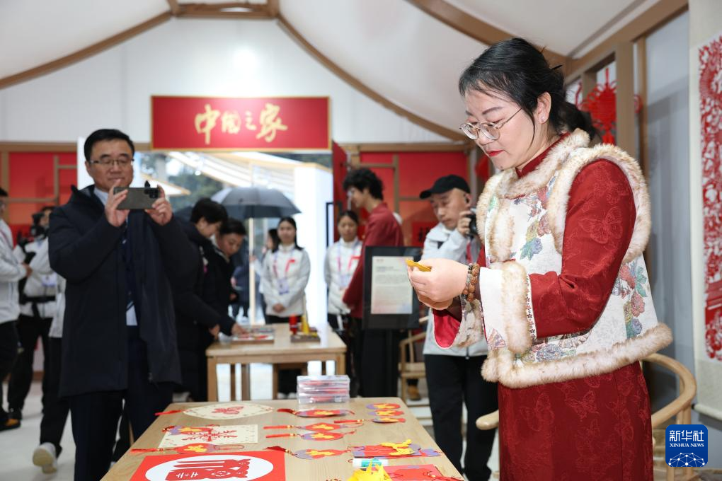 2月4日,非遗传承人在冬奥会“中国之家”展示剪纸。