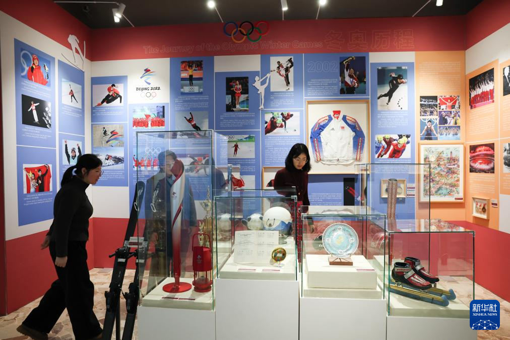 2月4日,人们在冬奥会“中国之家”参观“冬奥历程”展示区。