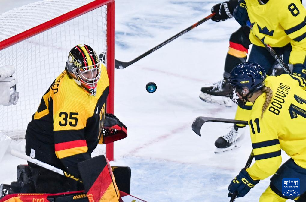 当地时间2月5日,在意大利米兰举行的米兰-科尔蒂纳冬奥会冰球项目女子小组赛B组比赛中,瑞典队4比1战胜德国队。