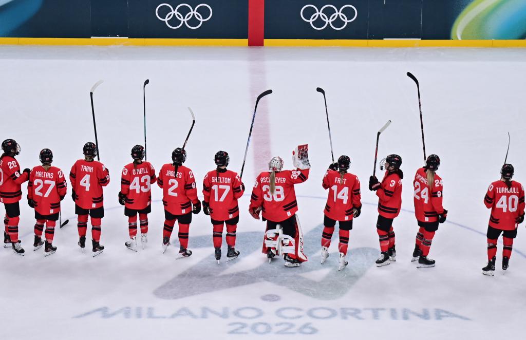 当地时间2月16日,在意大利米兰举行的米兰-科尔蒂纳冬奥会冰球项目女子半决赛中,加拿大队2比1战胜瑞士队。