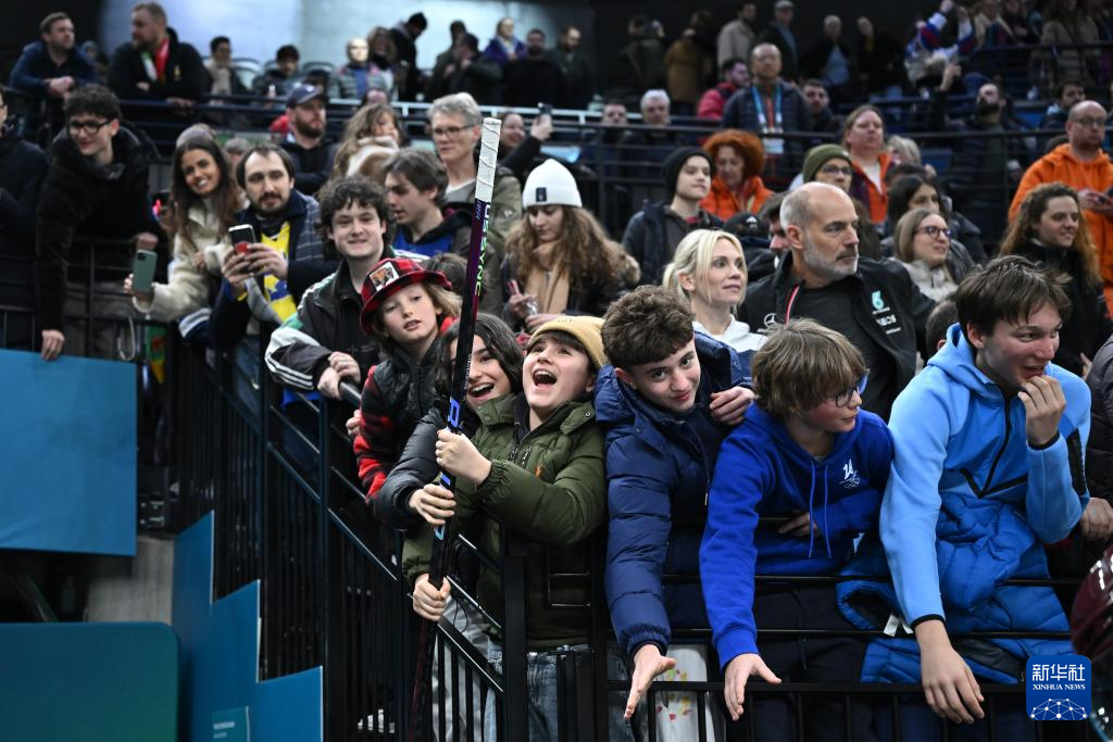 2月17日,一名观众在赛后收获了球员赠送的球杆。