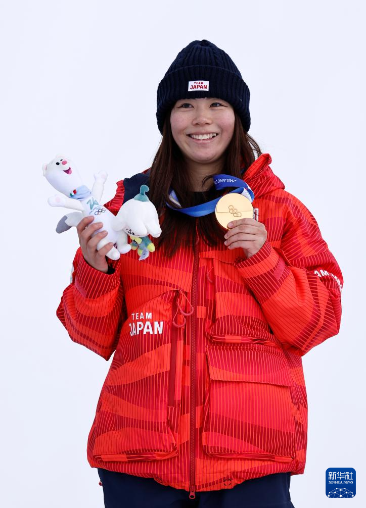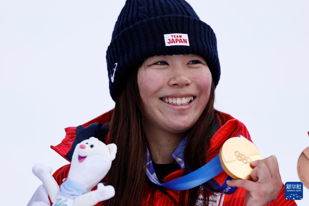 2月18日,季军日本选手村濑心椛在颁奖仪式上。