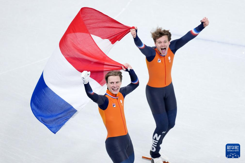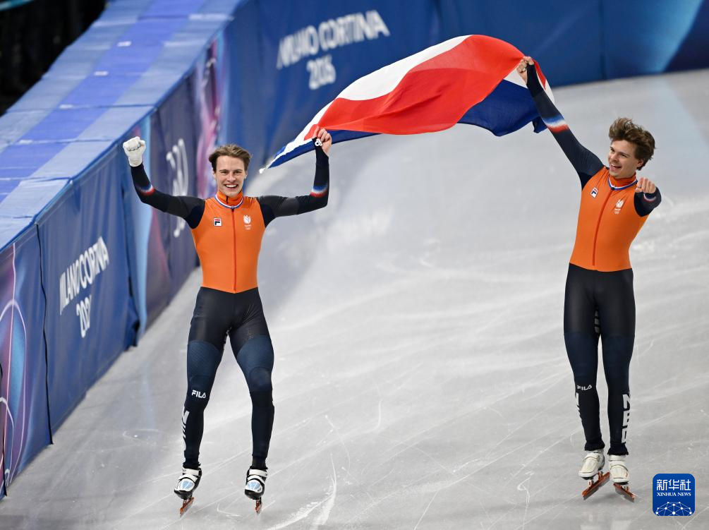 2月18日,荷兰选手梅勒·范特·沃特(右)和延斯·范特·沃特赛后庆祝。