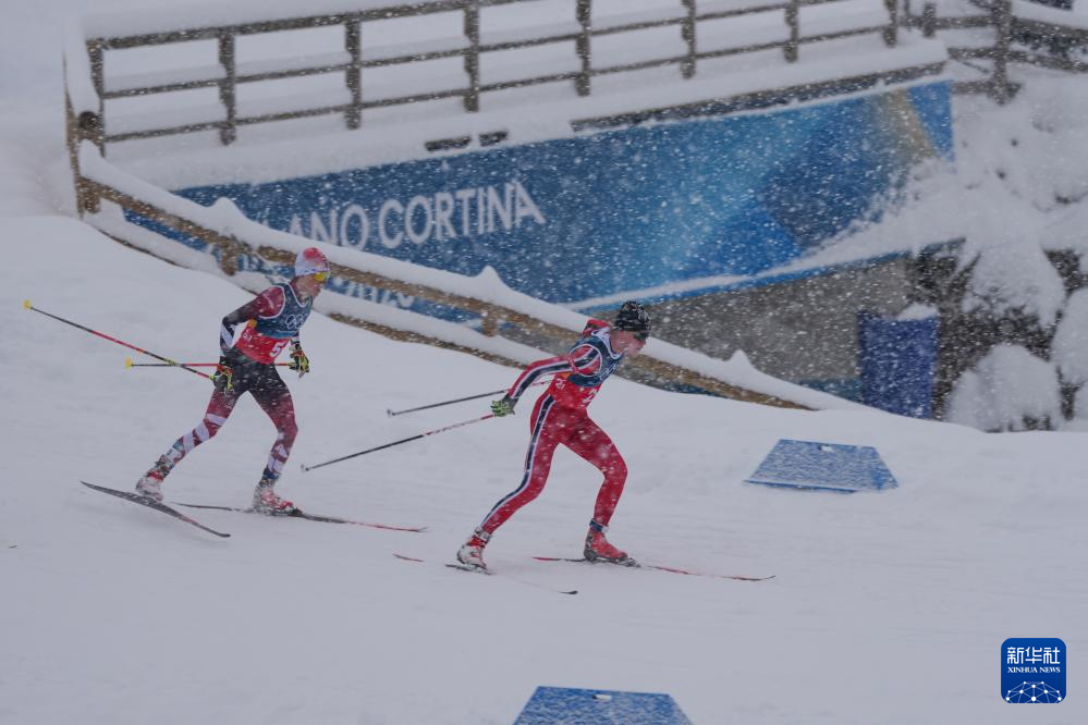 2月19日,挪威队选手奥夫特布罗(右)在比赛中。