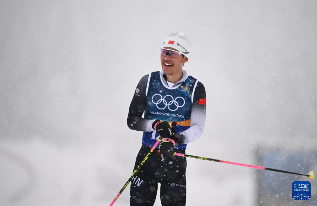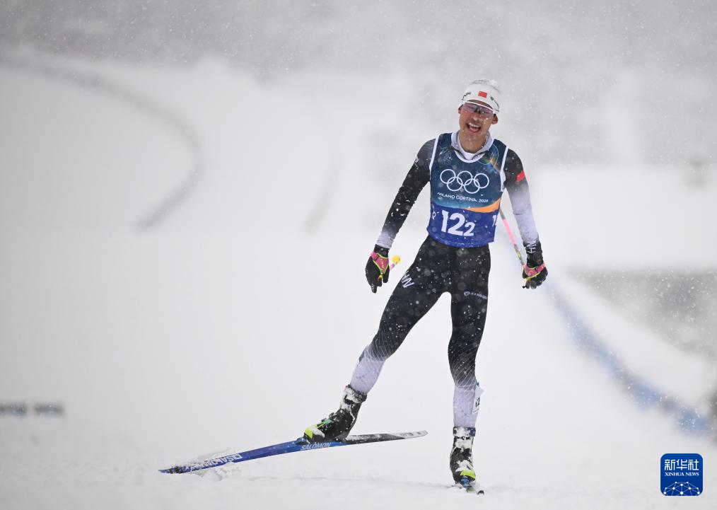 2月19日,中国队选手赵嘉文在冲线后。