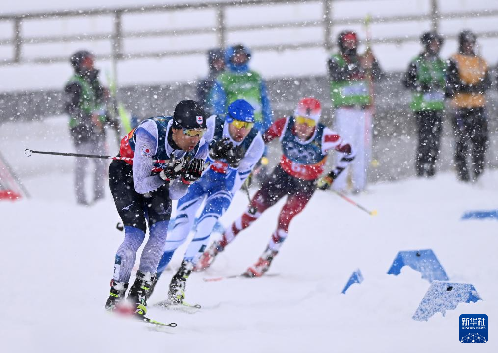 2月19日,选手们在比赛中交接。