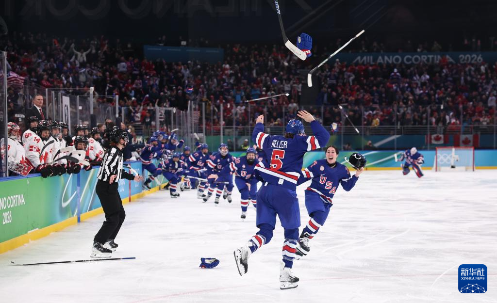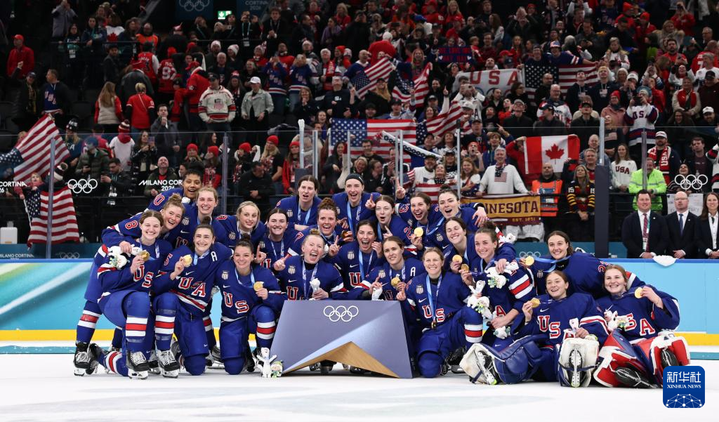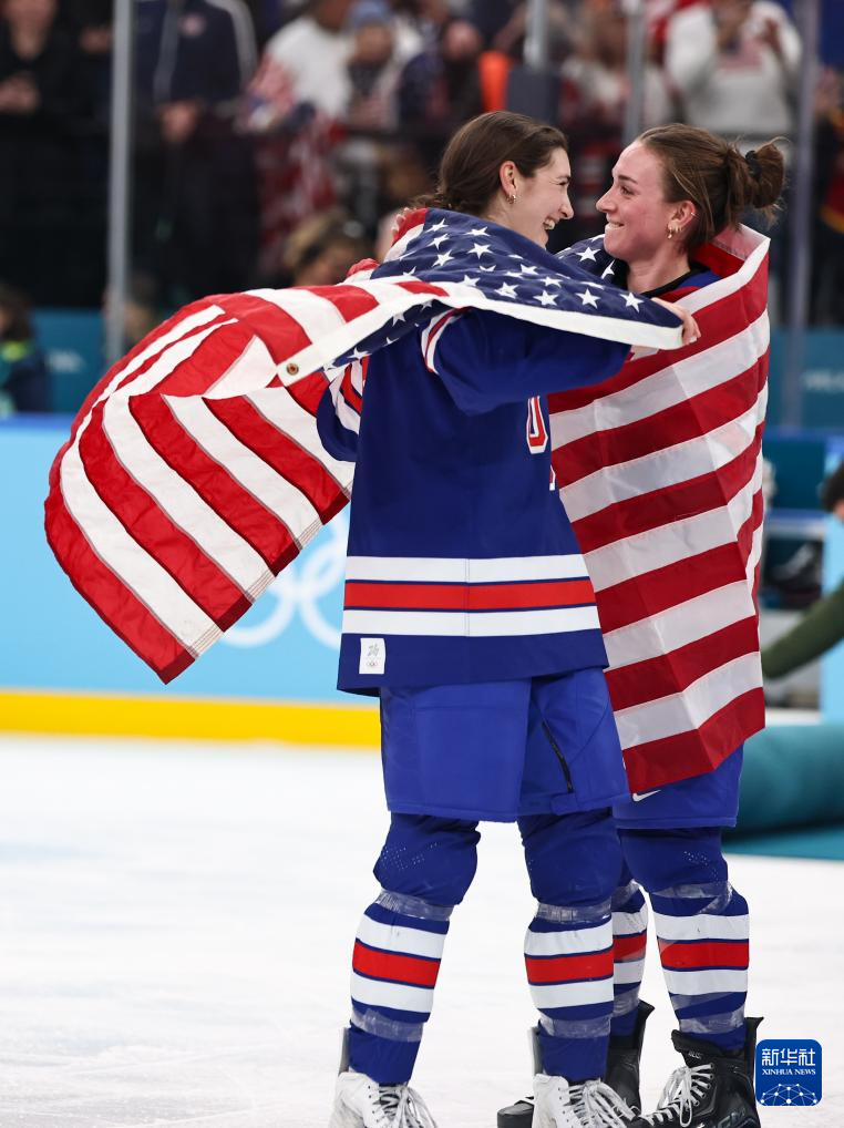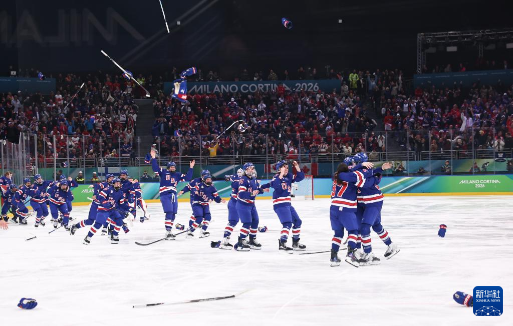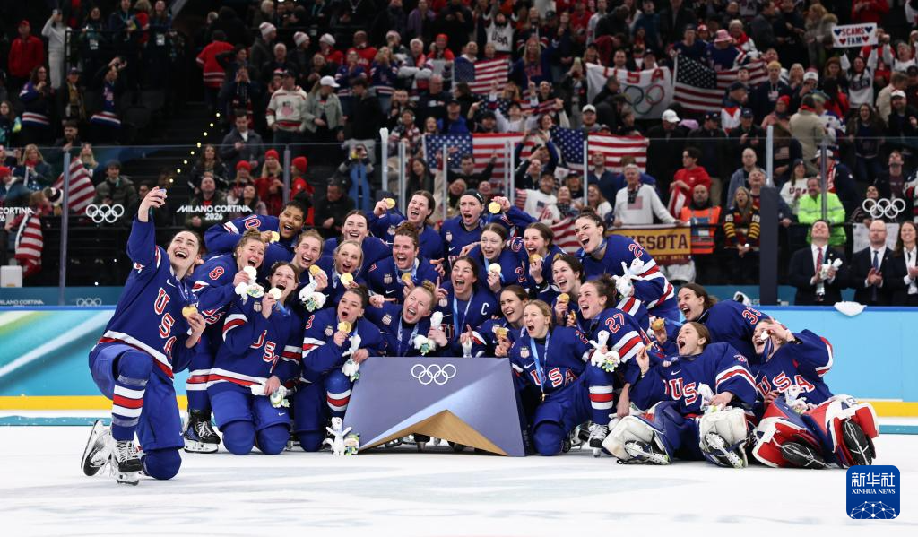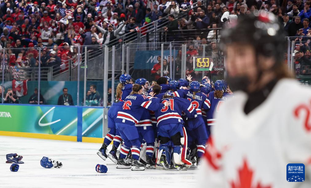 当地时间2月19日,米兰-科尔蒂纳冬奥会冰球项目女子金牌赛在意大利米兰举行,美国队2比1战胜加拿大队,夺得冠军。