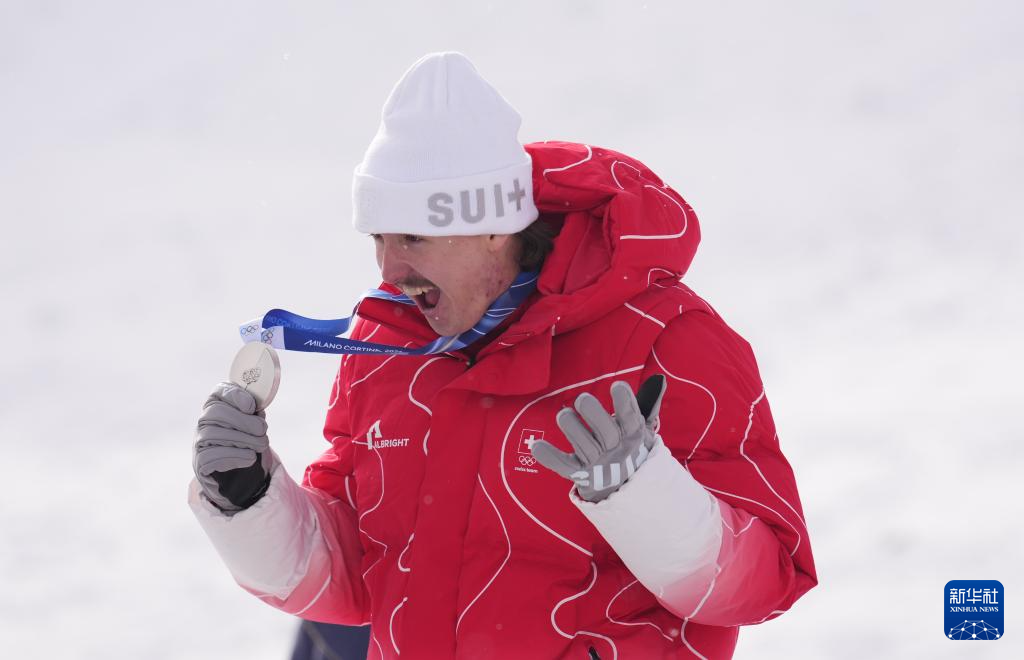 2月20日,亚军瑞士选手罗特在颁奖仪式上庆祝。