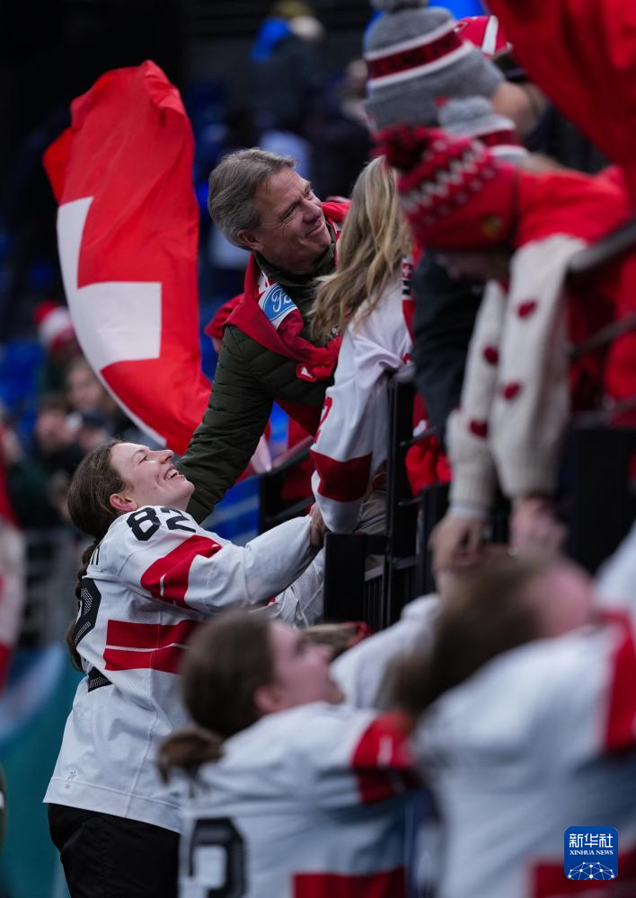 2月19日,瑞士队球员阿林娜·米勒在赛后庆祝胜利。
